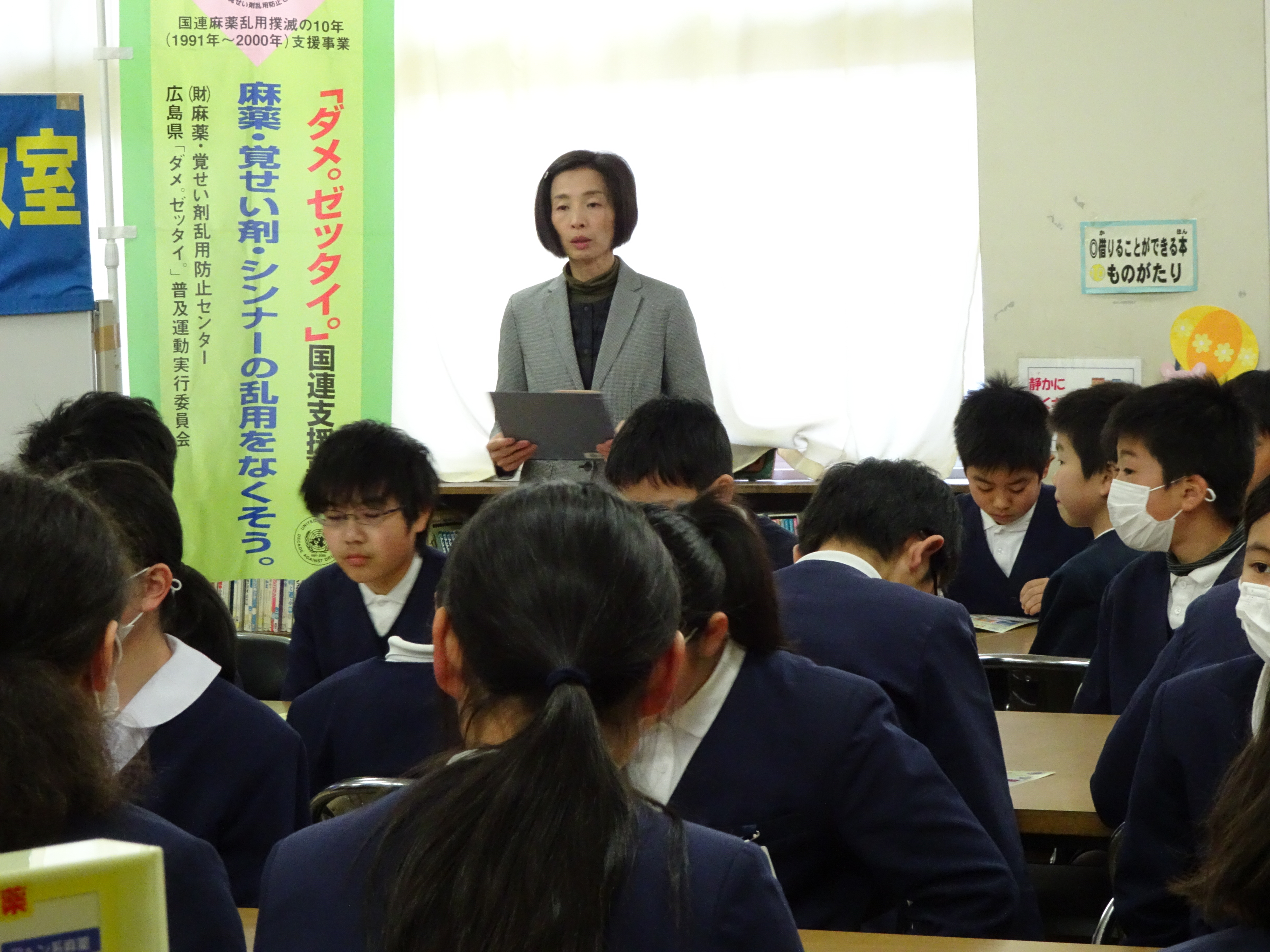 今年度12回目となる薬物乱用防止教室は福山市立津之郷小学校で行われました。