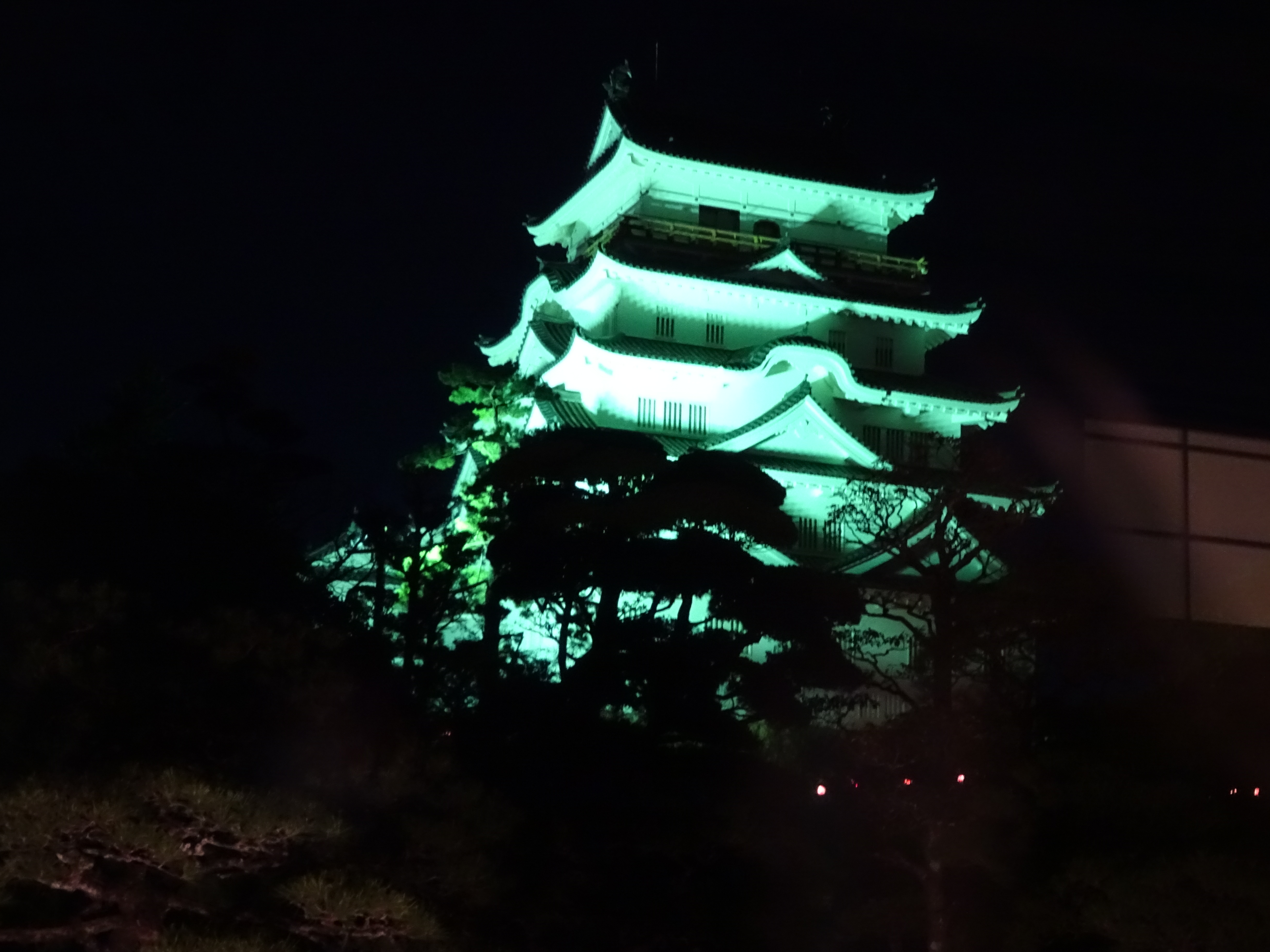 ライトアップされた福山城北面。